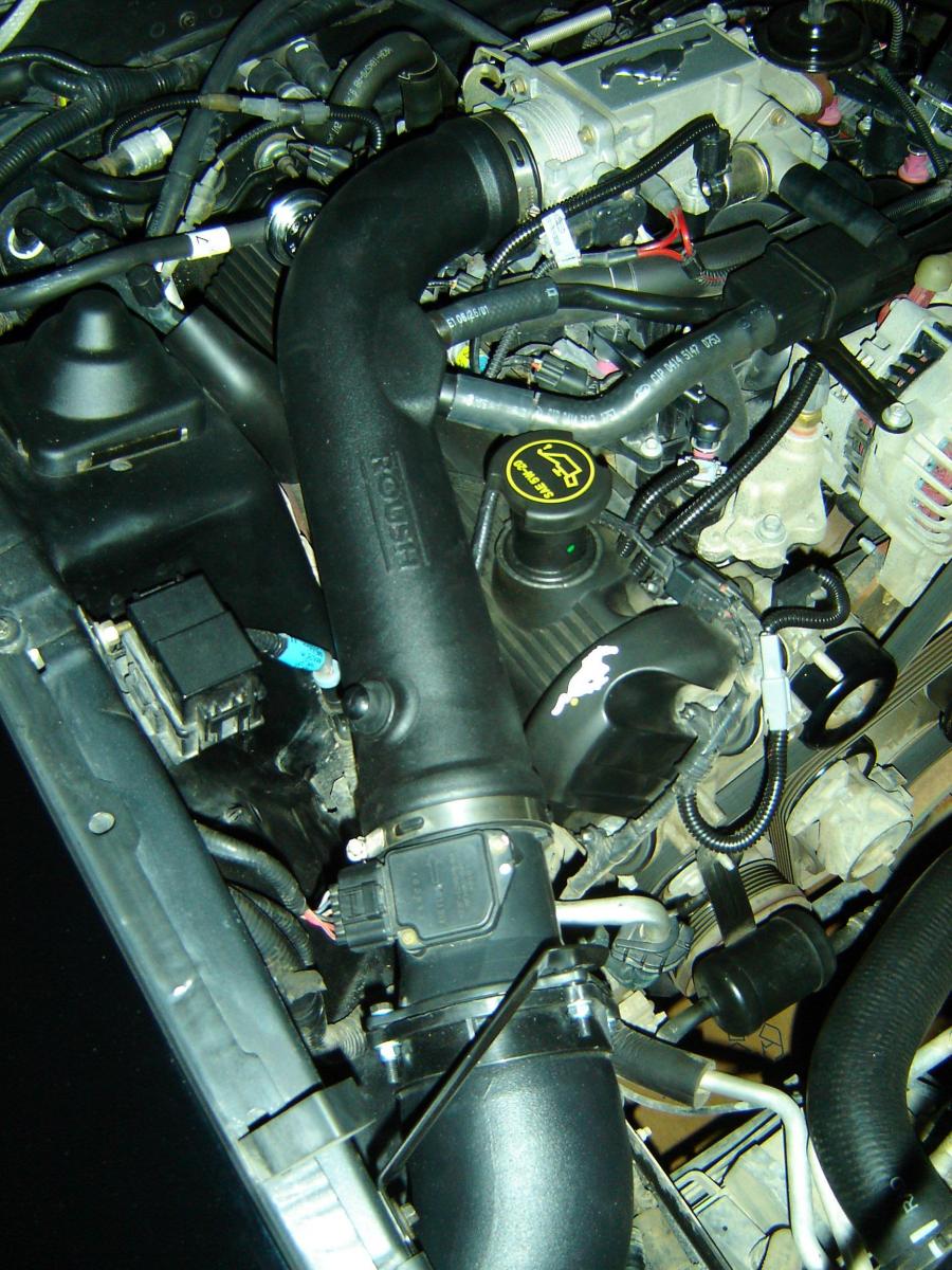 I have a WMSRacing intake. It hooks up to the factory rubber and in my opinion is way more restrictive then the BBK. I bought the car with this on.