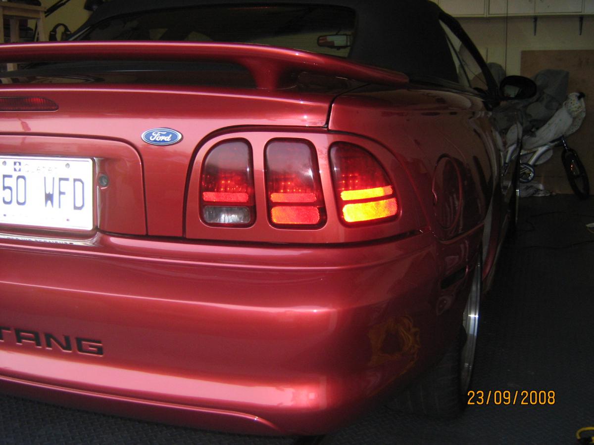 1) Mask the area ... Mask the area off with masking tap obviously,and also yous plastic bag type of material to cover most of the back of your stang off.