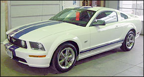 Kristina, this pic was posted on my dealer's website (stang they just sold). The blue stripes look awesome on the white. I saw this car when it just came onto the lot without the stripes. Part of me is wishing I'd gotten this one! If you're looking for a good shop to do stripes for you, just contact Eastgate Ford in Hamilton (www.eastgateford.com) and ask for their guy. He also did my car and he did a great job.