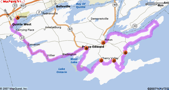 Date: July 1st 2007 Time: 9:00 am - 2:00 pm Beginning Location: Duncan Mc Donald Community Gardens. Trenton Stops: 1. Sandbanks Winery - http://www.sandbankswinery.com 2. Black River Cheese Factory - http://www.blackrivercheese.com/index.html 3. Lake On The Mountain - http://www.lakeonthemountain.com/ 4. Splash Restaurant - No Website. Map: Attachment 23485 Directions: From the highway, take exit #526 Glen Miller Road South. Turn into Sidney. Take Sidney South to Dixon, turn right. Left at Marmora. Left at Dundas, and right at South Street. Enter the Community Gardens. Leaving the Gardens, left onto Dundas, stay on Dundas then left onto CR-33 South. Follow 33 to stop #1. From stop #1, follow 33 to Bloomfield. Turn right at the corner, then turn right onto Stanely Street (CR-12). Follow CR-12 into Sandbanks Provincial Park. Follow 12 through to CR-18. Right on 18 and follow to Cherry Valley. Right onto CR-10, follow to Milford. Right onto CR-9 and follow to south bay. Left onto CR-13 and follow to stop #2. From stop number to, take CR-13 and follow to CR-8. Turn right onto CR-8 and follow all the way around Cressy Point, then turns into CR-7. Follow to stop #3. From stop #3, follow CR-7 to CR-33 and turn left. Follow 33 into Picton, and then stop at stop#4. I plan to stop at least 30 mins at each stop. I will also obtain maps for key people in the cruise. This means at least every 3 or 4 cars will be following someone with a map. 2-way radios are extremely handy on this cruise. There are few gas stations along the way, but enough to satisfy the gastanks. The last stop, Splash, will require us to park our cars in a parking area thats just behind the building. After Splash, I will direct the group to Talbot St which turns into CR-4. On that road is a nice tree covered section of road. The time I put down is a guideline only. I would like to be leaving the Trenton area by 9:30 - 10:00 am. I would expect that we would be finished around 2:00 pm, but possibly may go later. At that point, we eat at the restaurant, and then everyone can leave at their own discretion. Please post in here if you are coming, as I would like to have a general idea of how many cars will be there so I can arrange parking space. |