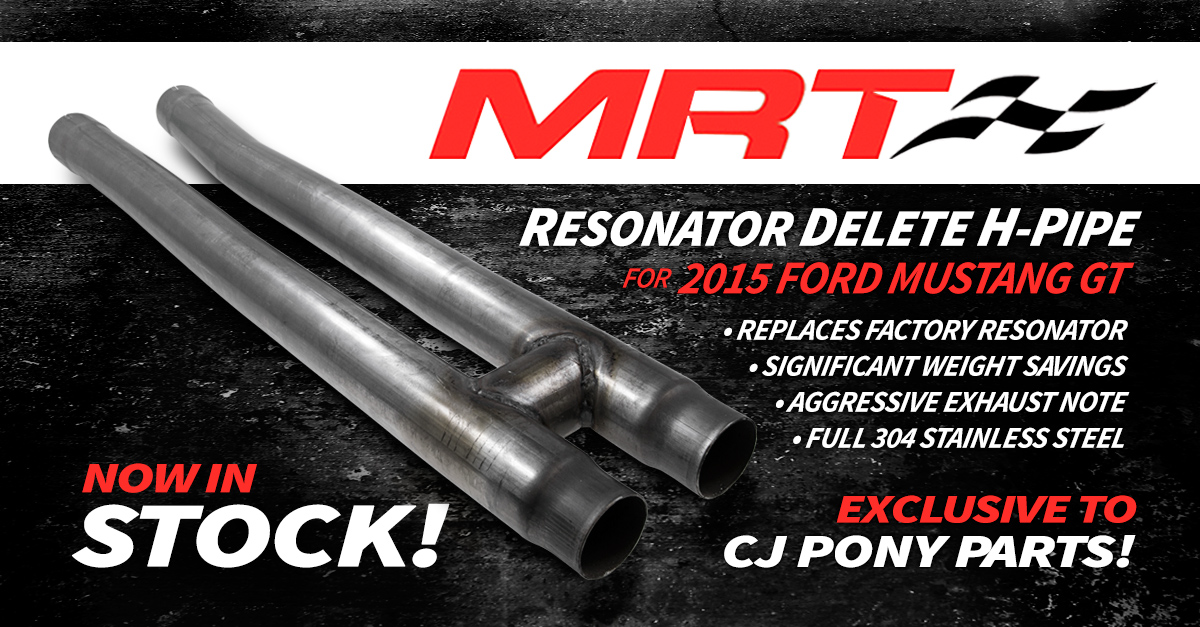 Drop that big, inefficient resonator from the exhaust system of your 2015 Mustang GT and replace it with the MRT Resonator Delete H-Pipe! This part is now IN STOCK and only available at CJ's! Mustang Racing Technologies HPMR1 Mustang Delete H-Pipe GT 15 |