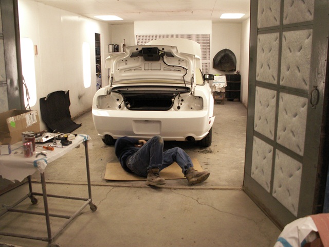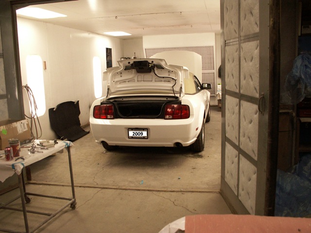 Well, I got around to getting my hood and rear bumper put on today. There are no more unsightly corrosion blisters on the hood and I’m now ready to have the dual exhaust put on. I also have to put the hood scoope and GT spoiler on. I thought that the easy part would be taking the flat convertible spoiler off. Wrong, it is double sided taped to the trunk and will not come off. If all goes well, it will be ready for my road trip south on the 24th. If I can’t get the spoiler to come off, I’ll just leave it until I come back.