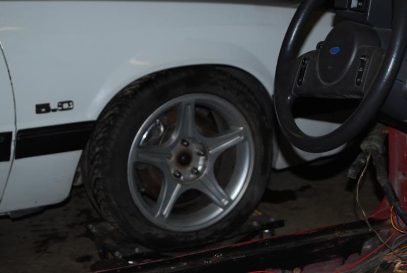 well since friday night i sold my ponies rims to 2tone i have NO rims left to make my car mobile as 4 lug....so i have had a set of mach brakes sitting on the shelf for two friggin years so today the front got quick swapped over and tossed on a set of starfish wheels