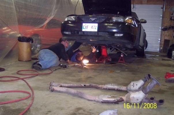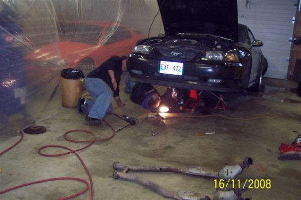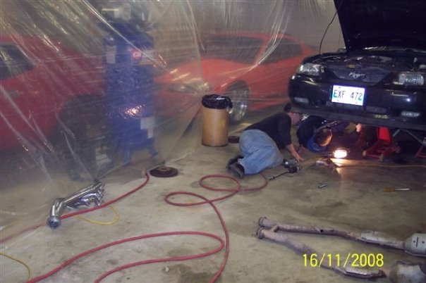 These are some pics of how we installed my Long Tube Headers and Mid Pipe if People are curious about doing it them selves it took us 8hrs of no stop work maybe 1 hr for beer and food breaks at most but youll get the idea of how it's done