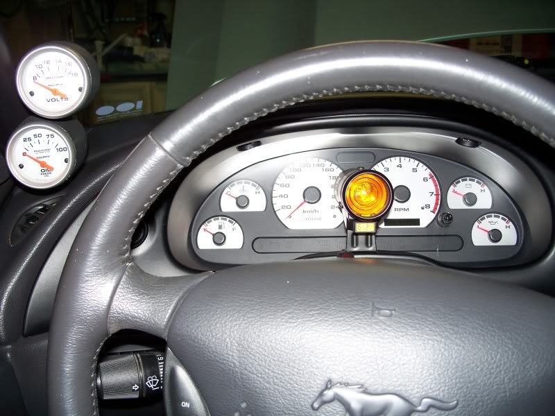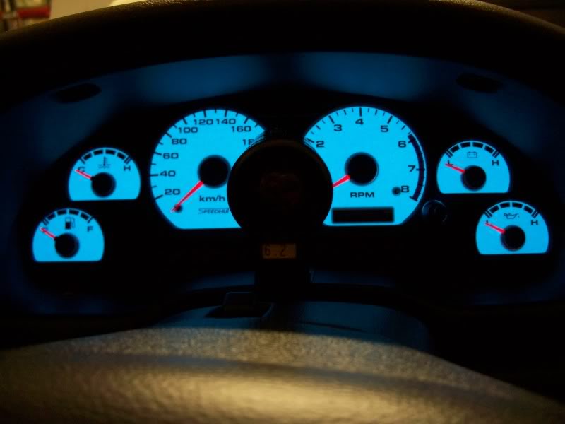 I was able to hook it all up after work today.I am really pleased with them but one thing,the green lighting is more like the green lighting in the newer Fords like my '06 F 150 which is like a blueish/green if you will,then my '03 GT which is more like the typical " darker like green" lighting.So the lighting doesn't match my Auto Meters green lights at all.I'll figure that out,i always do LOL!It's also hard to tell the difference in the pics from green to blue because of the silver,but in person it you can REALLY tell.:tup Here are some more pics for the viewing.:wink: Attachment 20617 Green lighting... Attachment 20618 Blue lighting... Attachment 20619 A shot along with the Auto Meter gauges... Attachment 20620 And where i put the inverter switch that goes with them.I wanted to keep it out of site,so it went under the steering column... Attachment 20621 |