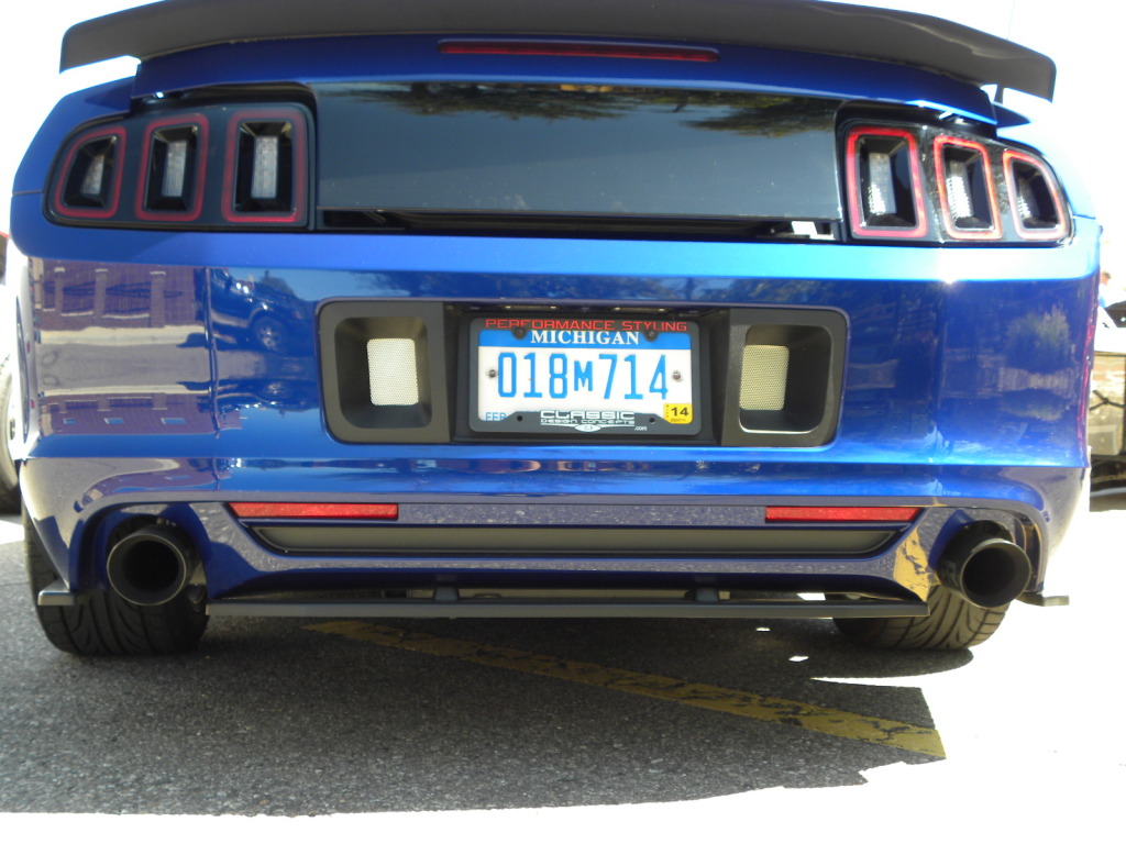 Saw this in Mustang Alley at Woodward. This is CDC's answer to the large rear licence plate mount for the 2013's. I like it!