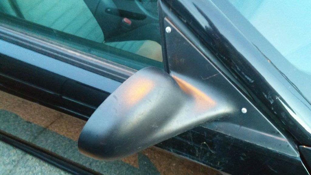 Is that mirror riveted on, or screwed on ? From the look of the A pillar, there was some sort of impact.