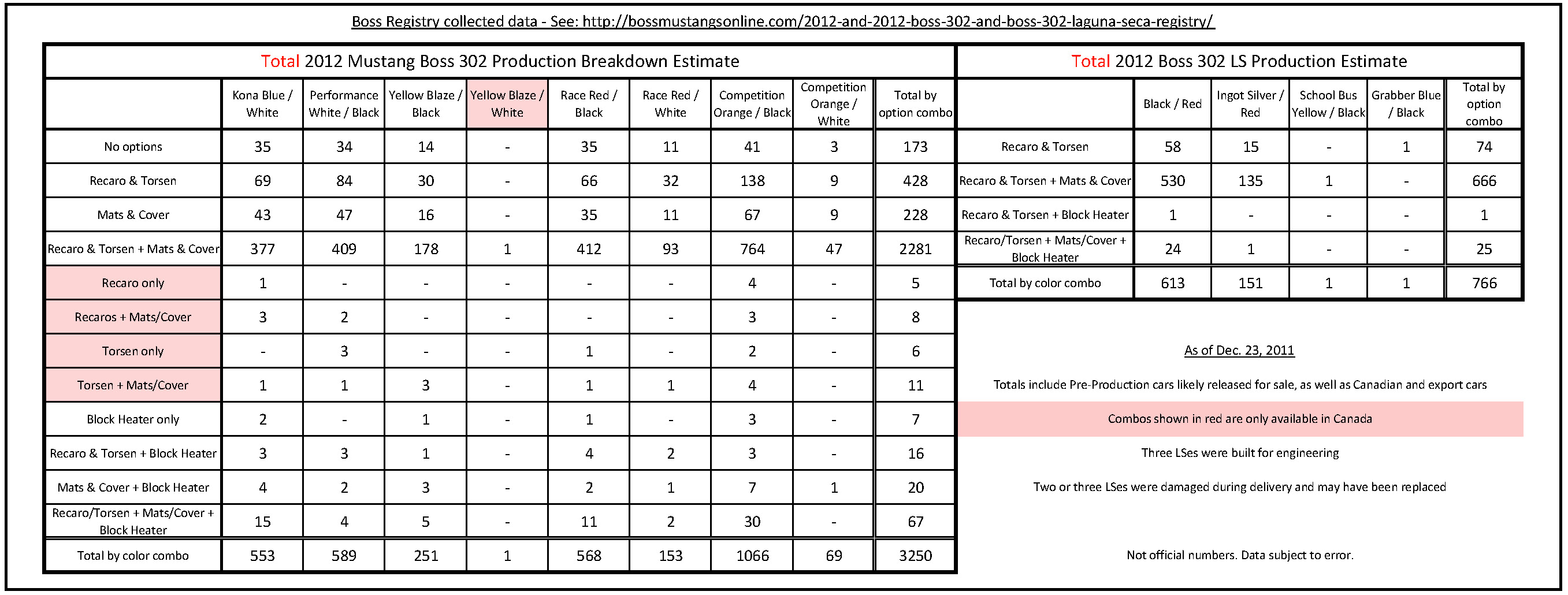 Here are the Canadian numbers. This one is the 1 ordered with out the cover and floor mats. Kind off neat that it is the only one ordered that way.