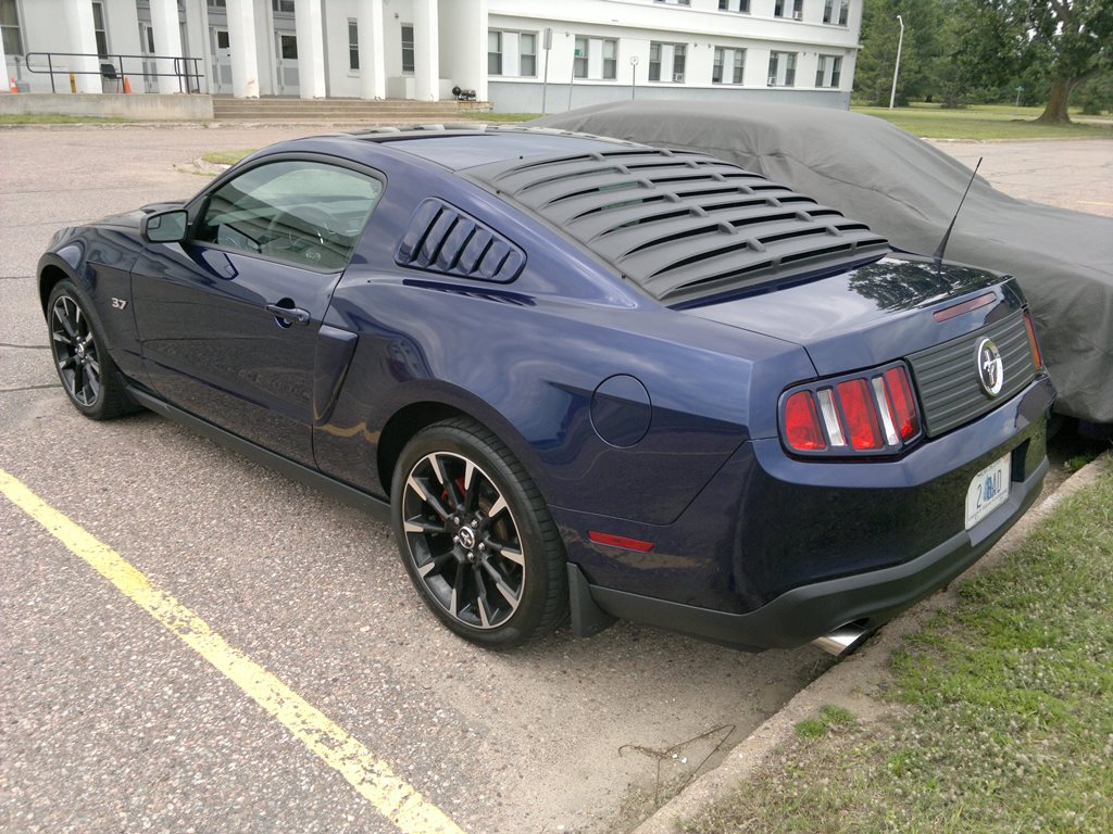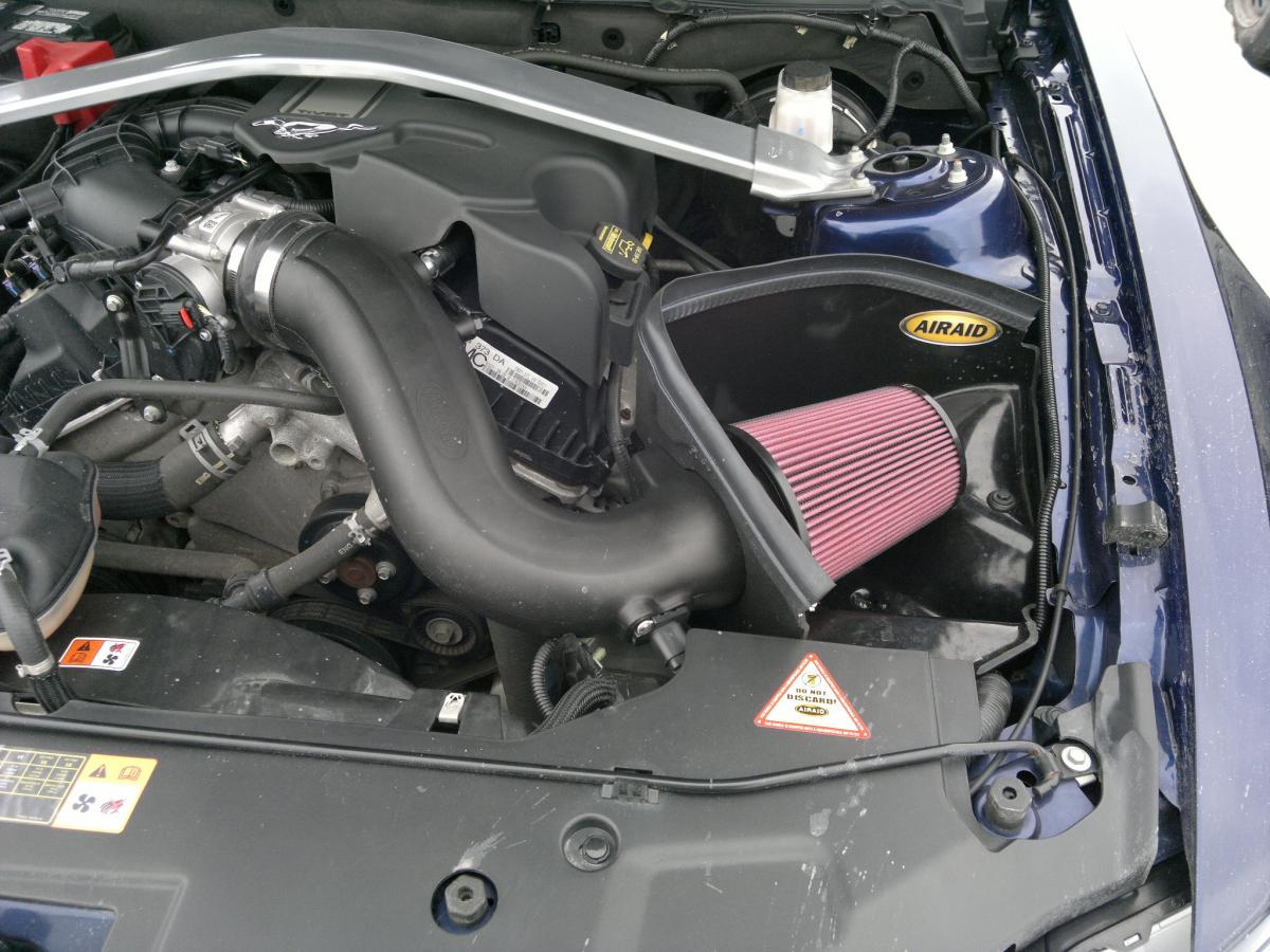 I just finished installing some new stuff to include an Airaid CAI, Headlight Spllitters, and a Rear Window Louver. I also installed a set of 3.7 badges which look pretty slick. I also bought the Intune Tuner from American Muscle and I'm really happy with that as well. See the pics below. Man I love this car!!!!