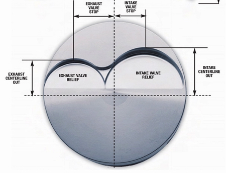 The side view shows the deck, dome height, lands, forced pin oilers, lock grooves, skirt and other elements, while the side cutaway view points out the compression height distance, valve pocket, valve angle, pin bore center, gauge point, and valve pocket depth. Finally, the top view shows us things like the intake and exhaust centerline out, intake and exhaust valve relief, and the valve stops. Armed with this information, never again will you be lost when in conversation with an engine builder or piston manufacturer. So, get to studying.