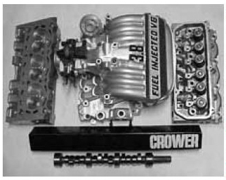 c) Order a Stage 3 Power Pack from Super Six Motorsports which comes with a new ported upper intake, ported lower intake, Stage 3 Super Heads with 1.94 / 1.56 stainless steel valves, SSM custom ground Comp Cams billet cam as well as forged internal pistons and rods. (see pic)