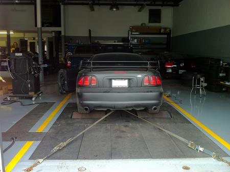 Got the car back today from Steeda.ca. Supercharger installed (thanks Pauly and Shawn), dynoed (thanks Pat) and I got TONS of pics of the install along the way (thanks Todd). A video of the dyno was taken too - I'll post it as soon as I get it. The car dynoed 210 HP at the rear wheels - she sounds like a rocket! Really fun to drive with the charger. Check out the pics!