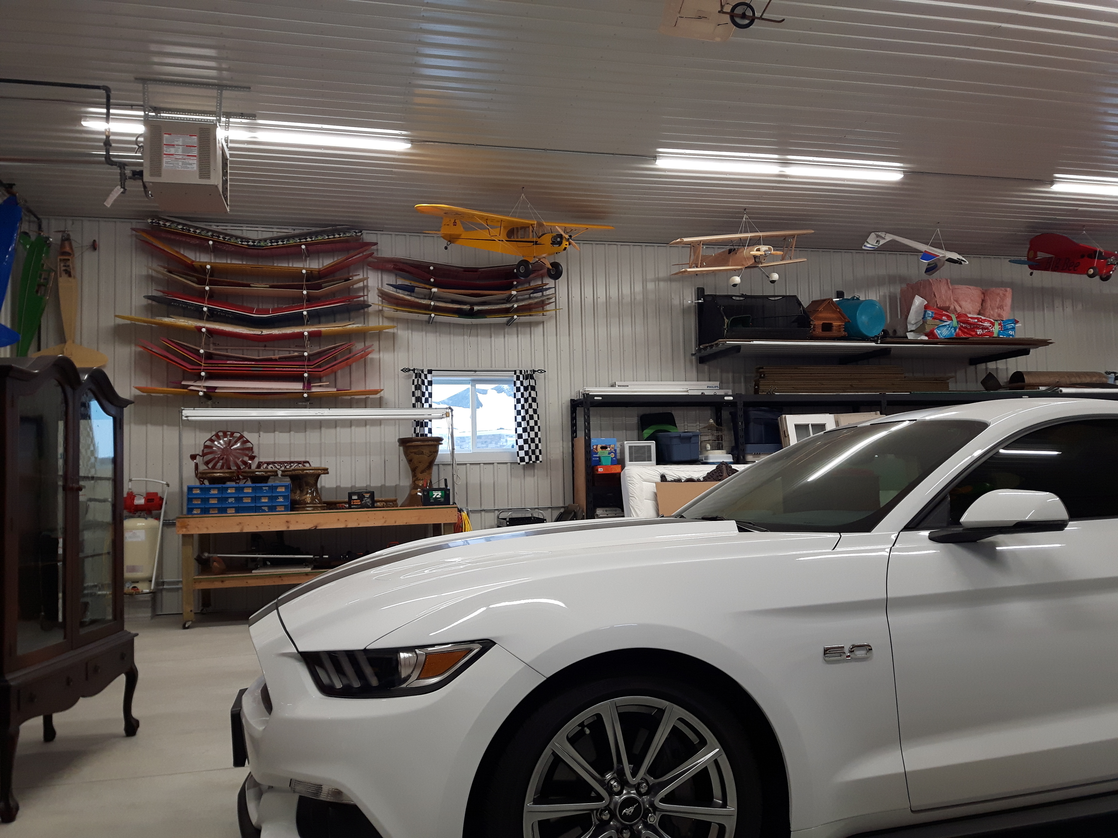 Awesome garage set up, i live for the day I could have a gas fired, ceiling mounted heater. Nice RC collection.