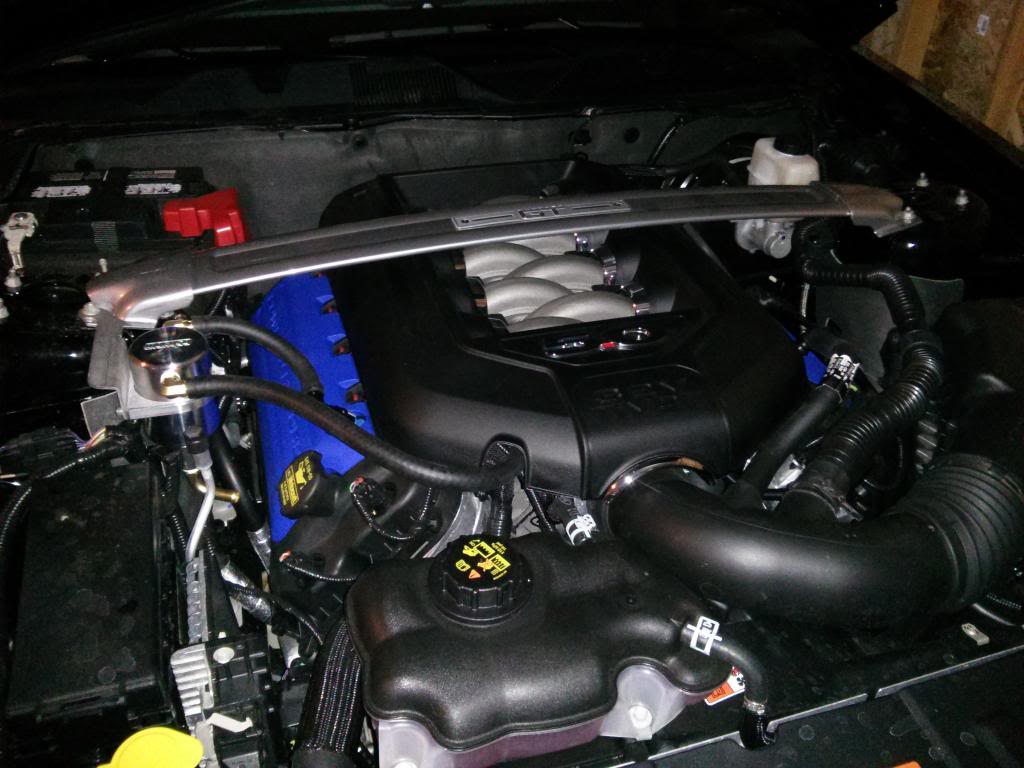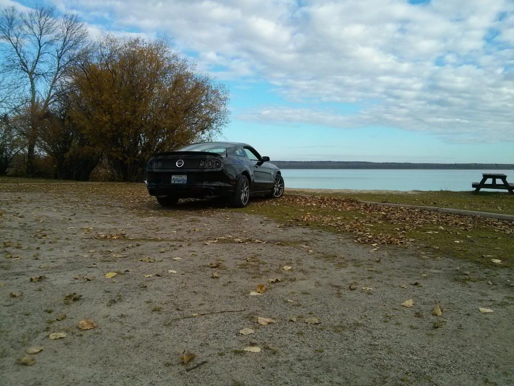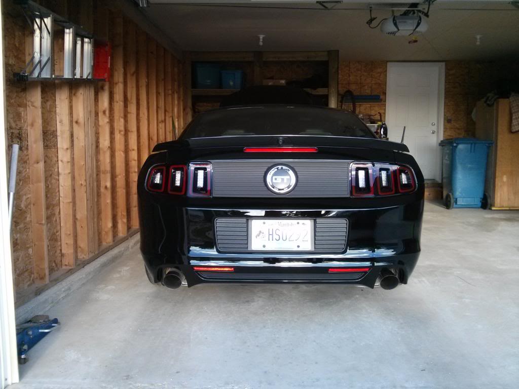 I've got a 2014 Mustang GT, in black. Ordered it from Midtown Ford in Winnipeg (highly recommend those guys, btw) at the end of March 2014, took delivery mid-June. For options, I ticked just 4 boxes: 401A, Track Pack (I guess Brembo Racing package in Canada), Shaker Pro, and the backup camera. As of right now, mods are limited to an MGW shifter, GT500 mufflers, Boss side exhausts, and a Moroso air/oil separator. I've also got some Boss coil covers, a BBR stubby antenna, MMD decklid panel and deleted the sound tube.