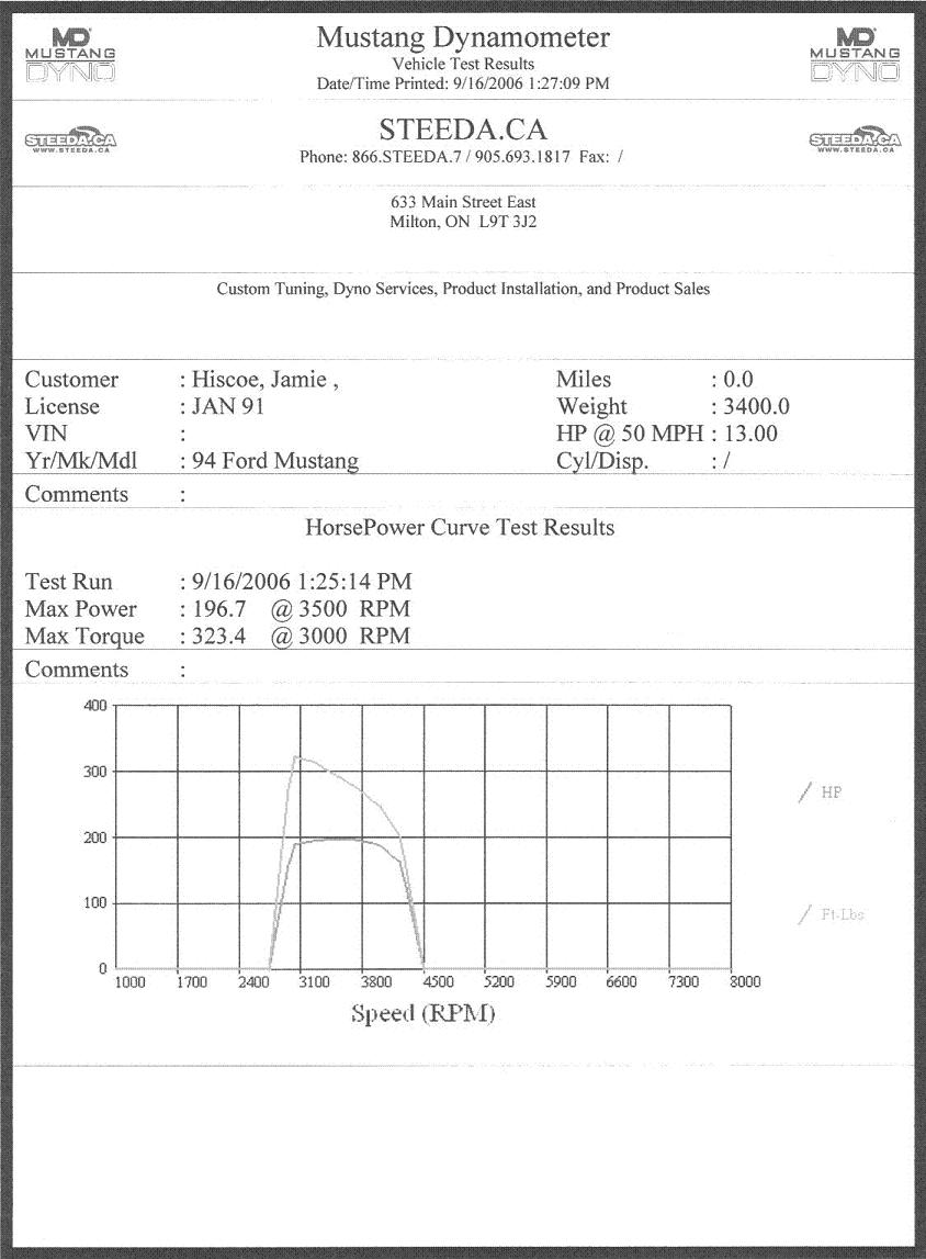 right now its the SC blower on a mustang bottom end, until I get the SC bottom end rebuilt. I got dyno'd today and made 196 RWHP and 323 RWTQ the motor is stock other then 10% blower pulley and aluminum jackshaft and aluminum underdrive pullies. I do have 42# injectors but the stock 30#er's from the SC will work fine, stock mustang MAF as well. Now that my tuner has a file that works with my car he can use it on other SC powered cars with the same setup, he has tuned many Supercoupe motors in mustangs now. If you go that way let me know I can do the install for you.