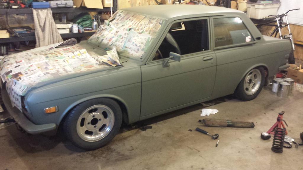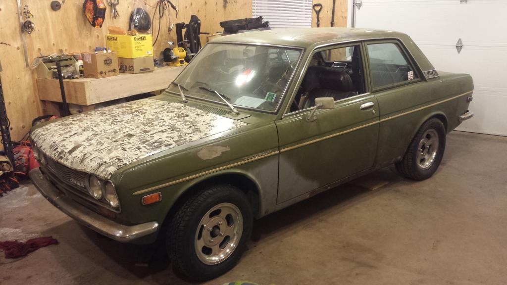 and my current project, a 1971 Datsun 510 which is just waiting on an exhaust and all the snow to be gone. It has a 2.1 Long Rod motor with dual carbs, ported head with bigger valves, huge cam, a Z car 5 speed trans and numerous other stuff. Not too much left stock and proud to say everything done to the car (apart from boring the block) was done by my hands alone.