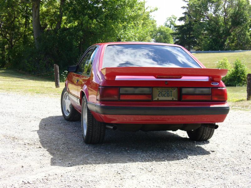 My current Mustang is an '89 LX hatchback. It is bone stock with the exception of a Saleen rear wing in place of the factory wing. Colour is bright red with the light grey GT interior.