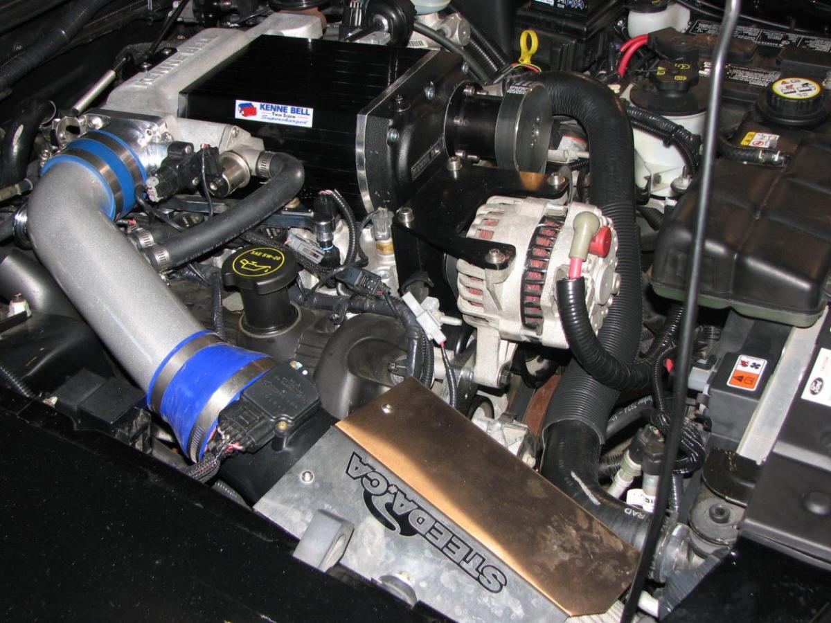 2003 GT. Car ran 14.30's when I purchased it new in 2003. After 7 years it now runs mid to high 11's @ 119 mph thanks to a Kenne Bell along with a long list of after market parts from Steeda.ca. Pat Arlia tuned it to 435 RWHP.