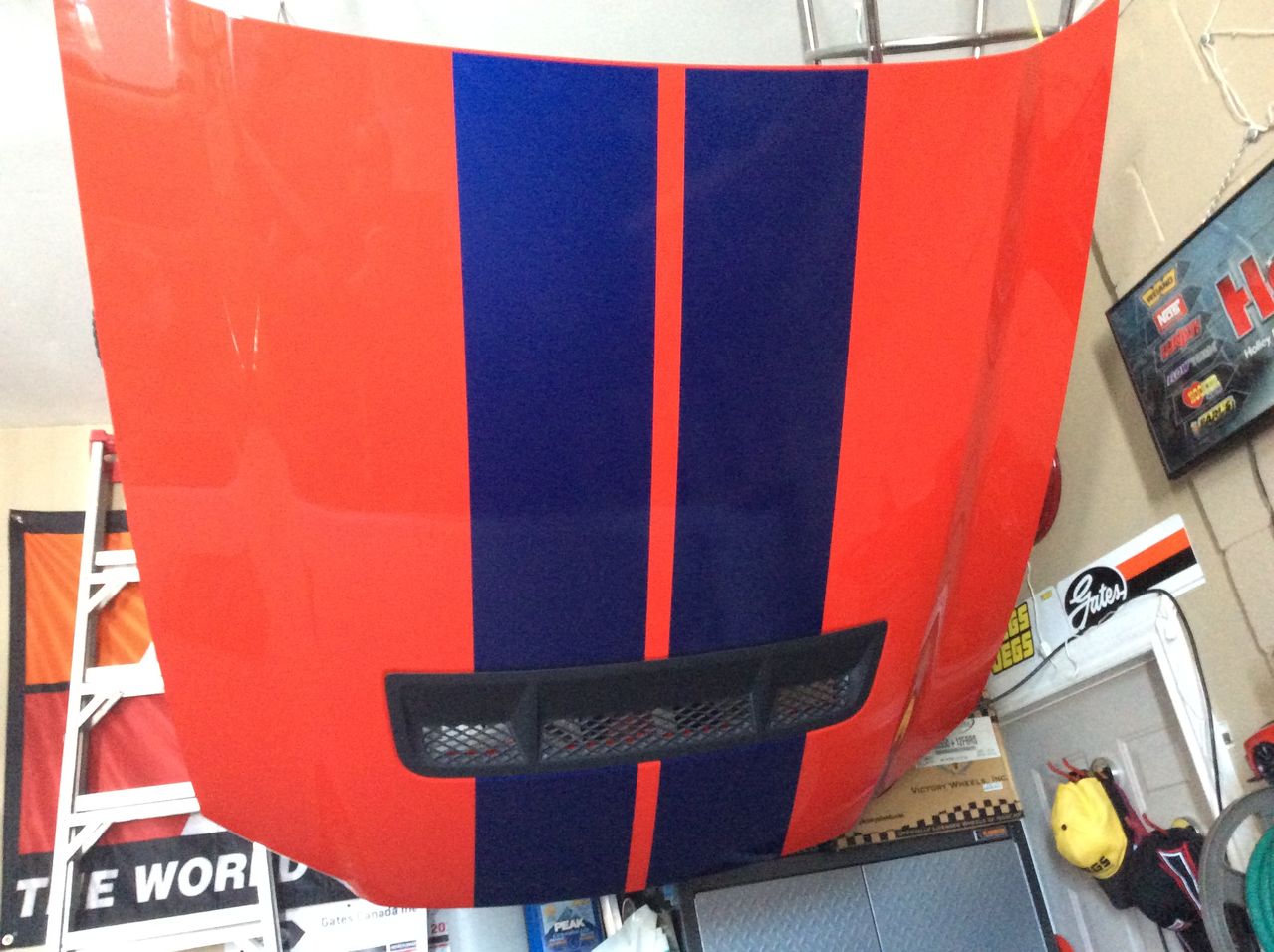 2014 GT500 take off hood for sale. I bought this to put on my 2013 Boss 302, but after pricing new Boss 302 hood stripes, I decided to not install it. It will fit all 2013-14 Mustang. Hood is Race Red paint code PQ, with windshield washer nozzles and hood insulation. Came off car with 6 km on it. Asking $600, but open to offers, I have it in Kijiji for $750. I live in Ontario. PM me if interested. Text me at 705-8two8-0five7five.