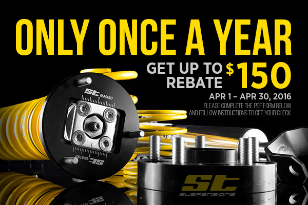 If you are looking to get your hands on some quality suspension parts without breaking the bank, don’t miss the opportunity to buy performance-oriented ones by ST Suspensions and receive your money back! Purchase any XTA Coilover and get a $150 rebate, buy any X Coilover and receive a $100 rebate, buy any Sway Bar Set and get a $75 rebate check or receive a $50 rebate with a purchase of Lowering Springs.