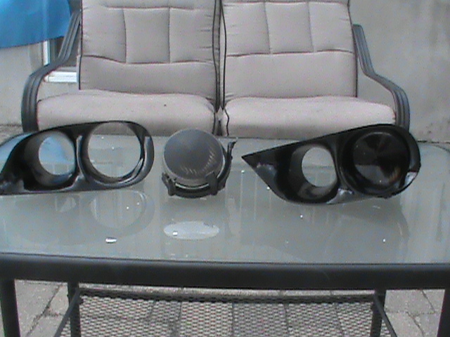 99-01 Cobra Fogs + bezels professionally tinted (40% black paint, 60% clear coat) and painted. Not ugly black plastic looks 100000000 times better painted. 1 side is broken but can easily be repaired with some JB weld or other strong glue.