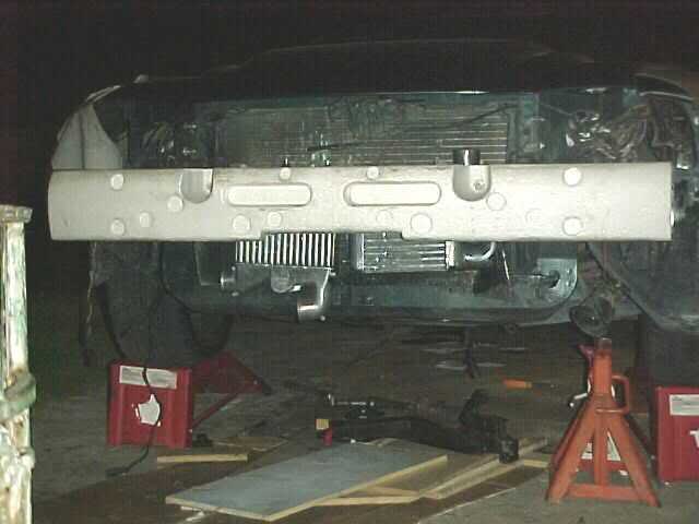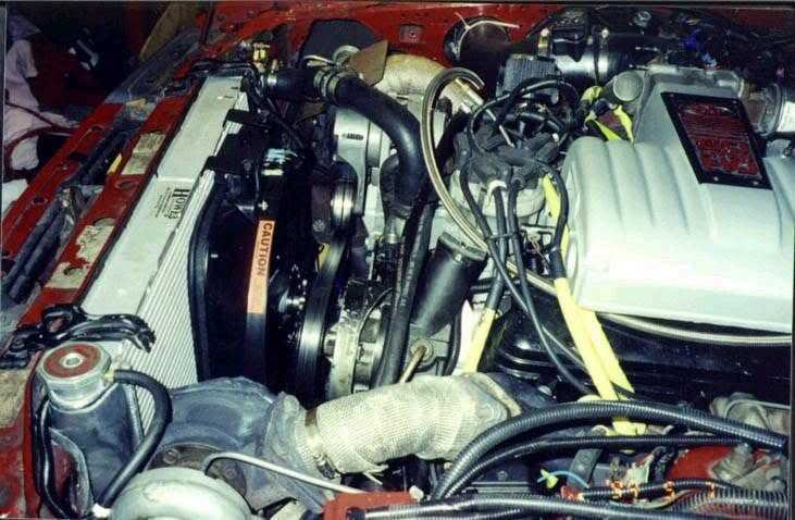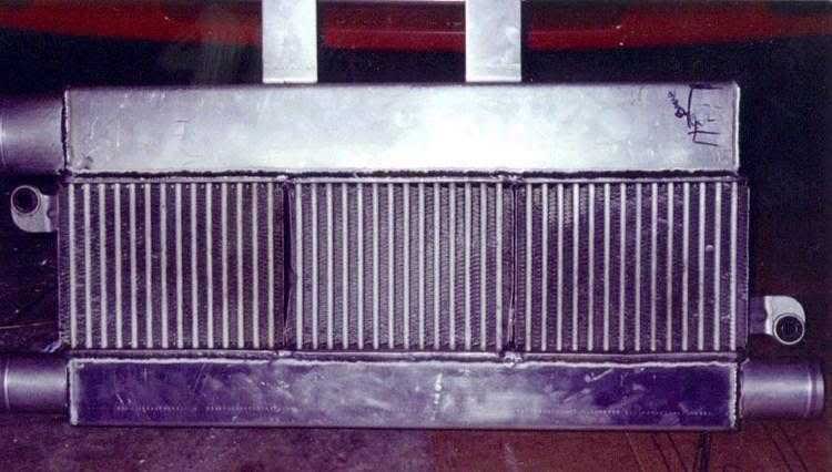 Well finally something to show to all interested in doing a TT setup at home, here's a very complete article written by our friend Chris Anderson. Details: Part 1 | Part 2 | Part 3 | Part 4 | Part 5 Part 4 -------------------------------------------------------------------------------- Even though his Stang is FOX, most of the procedures and stuff needed will be the same for a SN95 Steed. Check our previous articles for tips on the installation on a SN95 model. Other good news is that we will SELL TT Manifolds and Downpipe's, as to when...well i don't want to sound as the Calibrator guys but we think probably sometime around August 2000. These iron manifolds (not turned down headers) were modified to work for a TT setup. Well enough of vaporware, let's read Chris' article. Attachment 24423 These are what my intercooler started out as. Attachment 24424 Three individual units from 90-92 d.s.m. cars. 90-94 were all the same manual/ auto, front wheel, all-wheel it doesn't matter as long as they're turbo models. Each of these units are capable of efficiently cooling 200-250 hp worth of air. You do the math as to what they are capable of combined. Cost on these vary from place to place. New they are around $500 each, used as low as free to as much as $100 depending on condition. When looking at Intercoolers don't pay any attention to the shape of the end-tanks, they will be getting cut off anyway, the core is what you want to pay attention to. Look for obvious impact damage as well as small holes on the tube faces. Dented fins are not that big of a deal and can be worked straight with a small screwdriver. I paid as follows for these units, left-$10, center-$40, right-$50. To connect them together you need to cut off the end-tanks, Make a cut about an 1/8" above the tank-to-core bond. Take them to a shop to have them mated side to side. It is critical that the weld be clean and will not create any leaks between the cores. Once the cores are welded together you can get the dimensions for the new end tanks. Attachment 24425 Don't forget to take into consideration the tubing inlet and outlet sizes. I recommend having an 1/8" above and below the pipes. This will give plenty of room to make the welds without making the unit larger than it needs to be, you can run out of space in a hurry. To have end-tanks made simply go to any steel supply company and have them create U-channels to fit directly on top of the cores. Just tell them the dimensions yo need or even bring it in and show it to them and tell them what you are doing. 1/8" plate T-5054 aluminum is perfect for this, it is strong yet flexible enough to bend. You will also need some aluminum tubing for your hose inlets, kinsler fuel injection is where I usually get my tubing from, that get welded to the ends of the end-tanks . I also recommend having the tube ends rolled to prevent the hoses from coming off under boost. This is what your finished intercooler should look like. Attachment 24426 Notice the mounting tabs to secure the i.c. to the front radiator support. The unit is pictured up-side down. The 2, 2 1/4" inlets from the turbo's compressor discharge pipe will be at the top with the 3" outlet coming out of the bottom on the passenger side. I had to remove my front bumper-brace to get it up front. You can mount an i.c. flat under the vehicle if you so choose, but sometimes oil, power steering, and oil return lines might be an area of concern, and make it almost impossible if you ever wanted to run open dump tubes. The measurements on this unit are; 24" X 12.5" total height, 4" X 12.5" depth, the core dimensions are 24"L X 4"D X 6.5"H charge side(what is coming from the turbo's), 24"W X 6.5" H X 4" D ambient side (cooling air ). Total cost was about $300 to have everything done on this particular unit.That's not to bad considering that a spearco core about this size runs $700 +, not including the end-tanks. I used 2 1/4" rubber hose to connect the turbo's to the intercooler, and 3" from the intercooler to the motor. Simple 90, 60, 45 deg elbows are available from NAPA in the hose catalog.Some will say they are not good enough for turbo hose and will distort under high boost, if you're not going to be running 20+ pounds they will work fine. As you will see they are the same thing that ATI uses on it's procharger kits. These are the air inlet tubes that bring air into the turbo's. Attachment 24427 Each one resides in the fender wells so the turbo's can get cool, dense air. The inlets are 3" and after the bends neck down to 2 1/4". I fabricated these out of 3" mild steel 90 & 45 deg. tubing with 2 1/4" straight pipe I had a muffler shop flare out to 3" then welded and painted them. If you use .080" + tubing you should be able to get it to expand to 3". One 9"(RE-0810) & one 6"(RE-0930) K&N conical filter will be attached to each pipe. Making this is something you will need a welder for. Ignore the dates on these pictures, if I really did this back in 94 I would be famous. Attachment 24428 There are a few things I recommend when running a turbo motor. First being, take the motor apart and put in ARP head studs. If you ever nuke a gasket they will pay for themselves, they are also very strong and will do wonders for gasket retention. I use fel-pro stock replacement graphite head gaskets w/ my o-ringed block. I you're not detonating they'll hold fine. Second, get some form of A/F monitoring tool. EGT is my personal favorite. For about $140 you can save yourself a world of hurt. Third, a fuel press guage is just as important as a boost guage. If you don't have one, get one! Fourth, If you have the money, go aluminum heads. Something with good deck material to it like the TFS, Edelbrock, Canfield, AFR, etc., They have so many advantages it's not funny. They will also give you great expandability later. Attachment 24429 A lot to cover in this picture. Here you can see the upside-down mounted MAC headers, the 2 1/2 " connector pipes, driver side tur