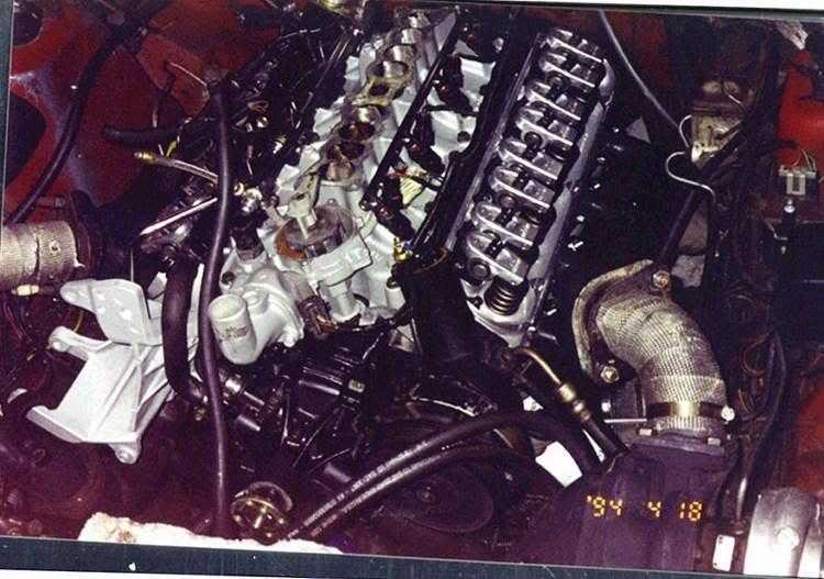 **********************************MOTOR & DRIVETRAIN************************************** Turbos ................................................Du al t-25 garrett/mitsu's from 95 eclipses Intercooler ..........................................(3) 90-92 talon/eclipse/laser intercoolers I.C.Piping ...........................................2 1/4" from turbo's / 3" From I.C. to motor Bypass valve ......................................Stock 90 talon Engine ...............................................Sto ck 302 Heads ................................................T. F.S. twisted wedge 2.02/1.60 valves Rockers........................................... ...Erson 1.6 fordged aluminum rollers Pushrods.......................................... ..T.F.S. 6.600" length cromemoly Intake ................................................St ock 87 upper-ported/ lower-welded&ported Throttle Body .....................................Stock 60mm ' 87 Injectors ............................................38 lb/hr Lucas Mass Airflow Sensor ..........................Pro-M 75mm Bullet Blow-Thru w/optimizer Computer .........Stock 88 cal. maf-sfi Cam .................................................S tock Pistons .............................................Stock 86 flat tops Compression .....................................9.5-9.7:1 Rods ................................................St ock Crank ...............................................Sto ck Ignition .............................................MSD- 6A Wires ...............................................Acc el 8.8 race wires w/ high temp sheild Fuel rails ..........................................Stock modified for dual -6 inlets Pressure Regulator ............................A.F.M Adjustable Billet Pump, Main Tank .....................190 LPH SVO Pump, Race Cell .........................................(2) stock Syclone/Typhoon Fuel Line ..........................................-8 from tanks to motor (2) -6 from y to rails Headers ........................................... 1 5/8" MAC's w/ 2 1/2" pipe to turbo's Down Pipes ......................................2 1/2" from Turbo's to H-Pipe Wastegate .......................................(2) Stock Eclipse H-pipe ..............................................Hook er Off-Road 2 /1/2" Mufflers ............................................Hooker Max-Flo's 2 1/2" Tail Pipes .........................................Hooker 2 1/2" Aluminized Transmission ....................................Stock T-5 Clutch ..............................................Stoc k Rear-End ..........................................8.8 w/ 3.55's and svo carrier Tires,Front ........................................205/60/15 BFG's Tires, Rear ........................................275/50/15 BFG's T/A & Comp T/A Drags Suspension Front ................................................70/30 lakewoods w/ Moroso drag srings Rear ................................................st ock w/ air bags in coils Guages ............................................Autome ter 2" boost/ water temp, 2 5/8 Fuel press. Casper elect. Knock meter, ACT, EGT ******************************TUNE UP********************************************** Fuel Type .........................................93 in main tank/ 110 Conoco in cell Timimg .............................................4-5 Deg. Initial w/stock computer Plug Type .........................................A/C R42XLS Gap .................................................. 035" Boost Retard .....................................None Fuel Press. .......................................42psi static/ 52-53psi @ full boost E.G.T ...............................................148 0-1520 deg. 1" from head on #3 Cyl A.C.T @ T.B................................100-110 deg @ 10psi w/ 75 deg ambient MAF Volts @Idle ...............................700-.730 E.G.T @ Idle .................................... 750-850 deg. Idle Speed ........................................800-850 rpm T.P.S. @ Idle ....................................98 volts T.P.S.@ W.O.T .................................4.899 volts Boost ................................................7-10 psi Performance 60' ...........................................1.973 330 ...........................................5.345 1/8 ............................................8.120 1/4 ...........................................12.464 MPH ........................................114.12 60' This was my first time out with this combo and the BFG drag radials. I was leaving the line at 3,000 rpm and goosing it on the last yellow. The front end would fly up and I was afraid they were going to break loose, so I would lift ever so slightly and the motor would drop out of boost and bog. As soon as I'd get back into it she'd dead hook and leave hard, as the photos show. This was @ 7psi! END of PART 4 Part 1 | Part 2 | Part 3 | Part 4 | Part 5 |