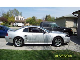 I am selling my 2000 Mustang GT, 4.6L V8, 5 spd, 130 000 km, Flowmaster exhaust, black leather interior, CD player, 2001 17`` Cobra rims, brand new tires 245/45/17, Mach 1 front lip, Cobra headlights. Never winter driven.