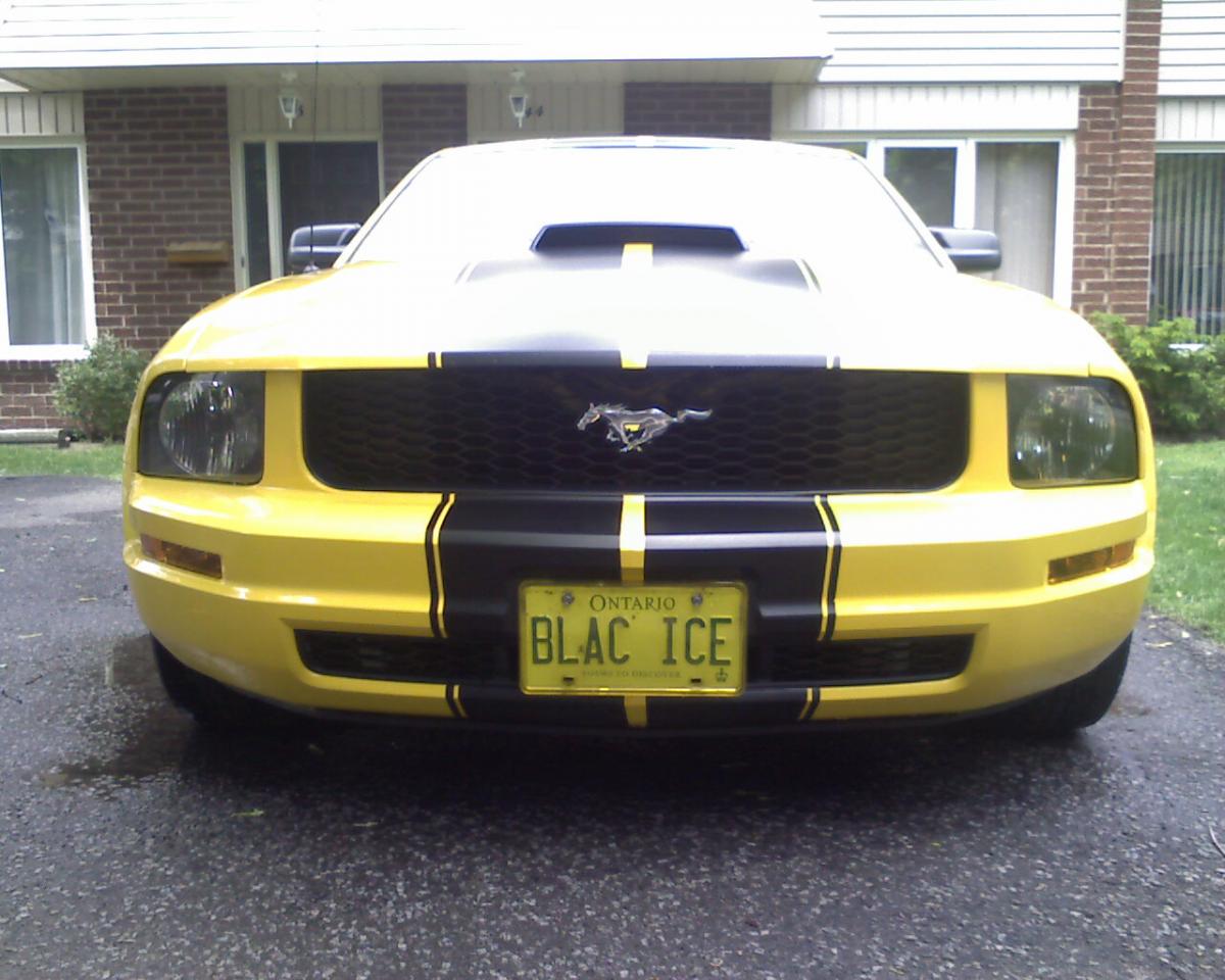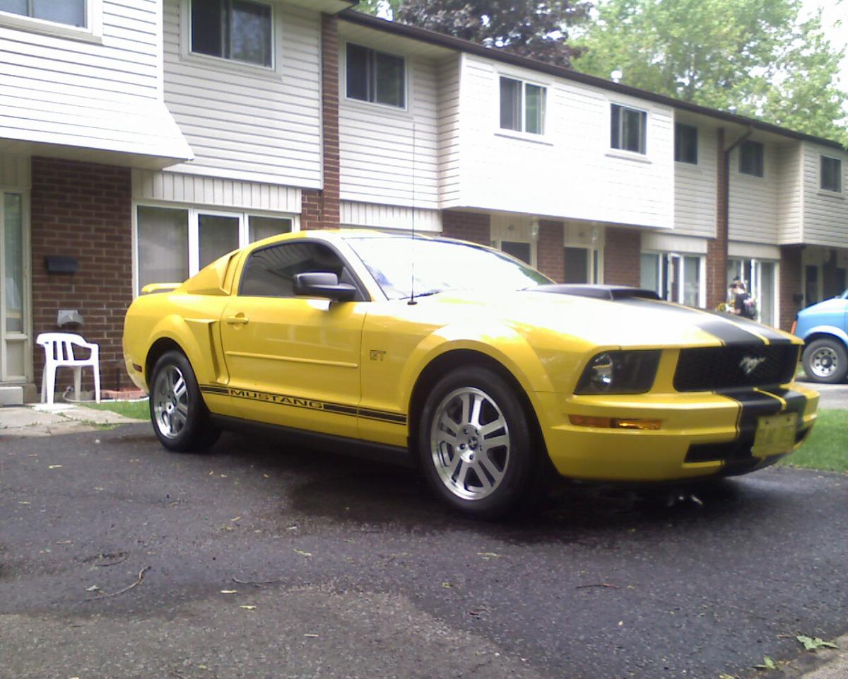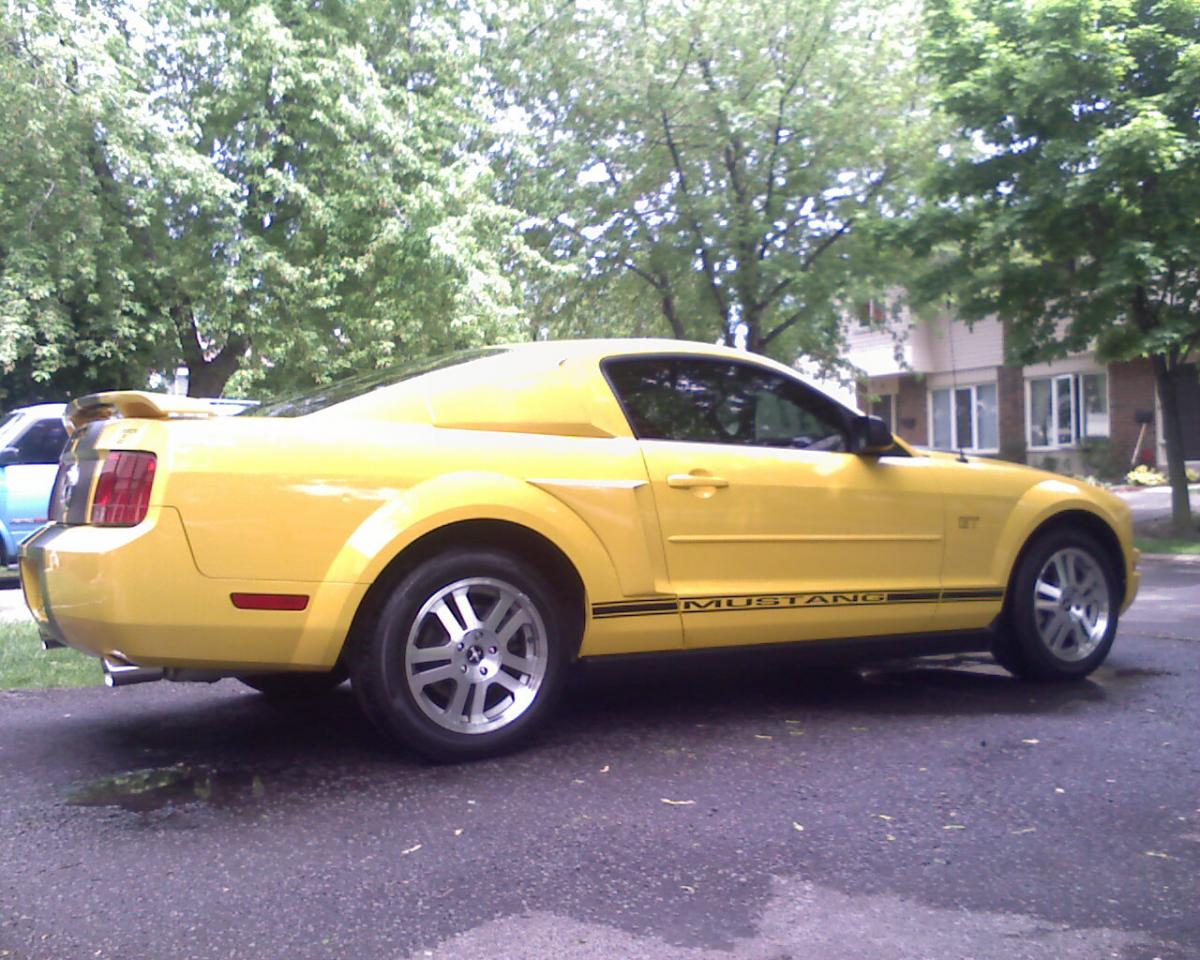 It started life as a Electric Yellow V6 Automatic Coupe. Over the last 3 years I have transformed this car into what it is now. Customs include GT Wheels and Pirelli Tires, Roush Hood Scoop and side Panels, Flat Black Striping, Tinted Windows, Hand bent 3" custom dual exhaust with Flowmaster Mufflers and Hi-Flo Cats with H-Pipe, and a nicely appointed dash kit. It is stored in winters and showed often in the summer. I have moved and have no room for this car and it needs a good home. I will certify and E-Test the car. Serious inquiries only...no test pilots.