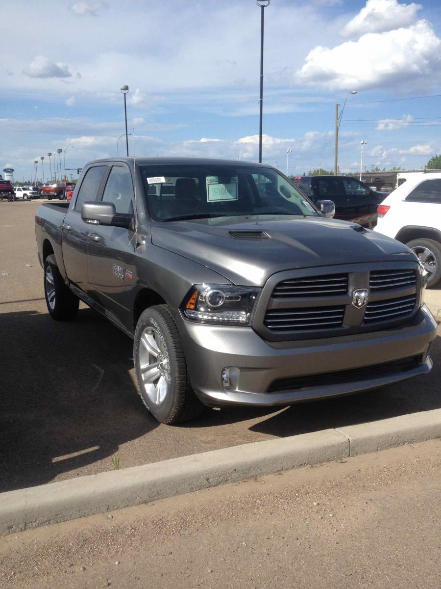 The Mustang is no longer mine! I test drove several trucks over the past couple of days, and as much as I have always been a Ford guy, I was most impressed with the 2013 Ram Sport, which is what I ended up with. It has the new 8 speed auto tranny, and their new air bag suspension package which lowers the truck quite a bit on the highway for maximum aero and fuel mileage, and also has settings to raise the truck with two off road settings. It has every available option, except the sunroof. It goes in tomorrow for bed liner and a few other accessories, and then will be coming home with me tomorrow night. I already miss the Mustang, and I know for sure that there will be another Mustang in my near future, just now quite as new as the last one. Here's a couple pics of the new truck.