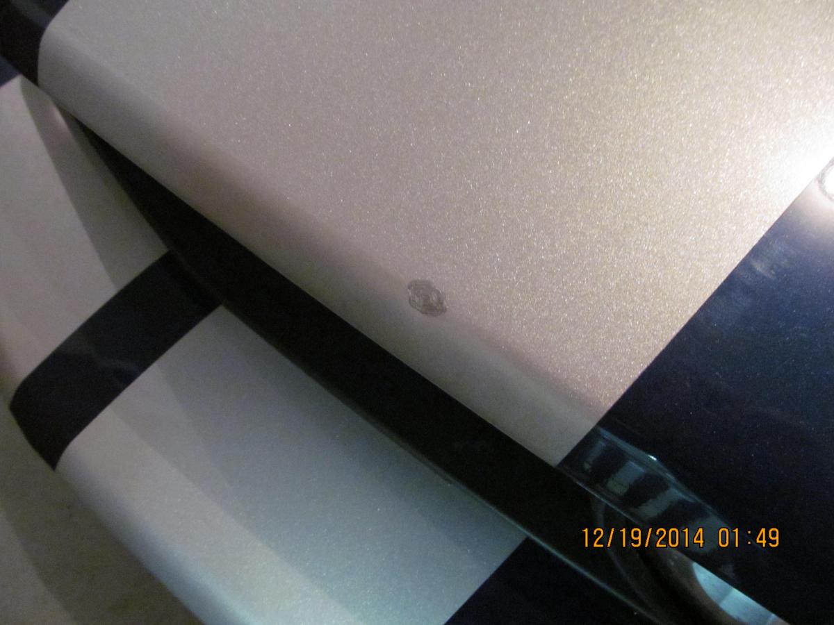 I agree with you regarding the decals however the rock chip repair was to big. Even after the rock chip was touched up the repair locked somewhat nasty. I only wanted one decal over the rock chip but my other half thought that the left side should have one two. Pics are of the repaired rock chip in the stripe paint. Not sure if I want to go through the cost of re-painting the whole hood.